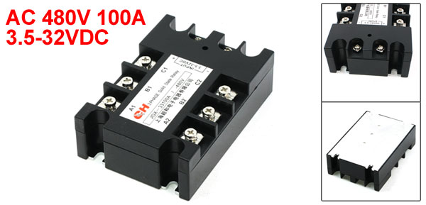Product Name 3 Phase Solid State Relay Model No. JGX-33100A Control Method DC to AC Input Voltage 3.5-32VDC Output Current 100A Output Voltage 480VAC Mount Hole Size 6 x 5mm/ 0.248"x 0.2"(L*W) Total Size (Approx.) 10.5 x 7.3 x 3.3cm / 4.1" x 2.9" x 1.3" (L*W*H ) Material Metal, Plastic Color Black, Silver Tone Net Weight 395g Package Content 1 x 3 Phase Solid State Relay - Reviews