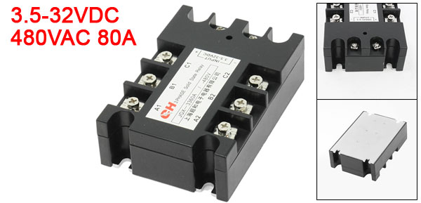 Product Name 3 Phase Solid State Relay Model No. JGX-3380A Control Method DC to AC Input Voltage 3.5-32VDC Output Current 80A Output Voltage 480VAC Mount Hole Size 6 x 5mm/ 0.248"x 0.2"(L*W) Total Size (Approx.) 10.5 x 7.3 x 3.3cm / 4.1" x 2.9" x 1.3" (L*W*H ) Material Metal, Plastic Color Black, Silver Tone Net Weight 397g Package Content 1 x 3 Phase Solid State Relay - Reviews