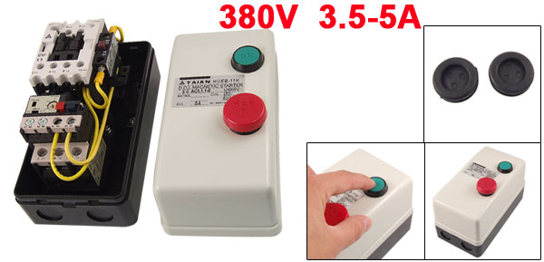 Product Name Magnetic Starter Model HUEB-11K Type Non-reversing Type, Momentary Push Button Coil Voltage 380V AC, 50/60Hz AC Contactor Ui: AC 660V Ith: 10A Contact: 4NO + 1NO, 3 Phase AC3 220V 230V 380V 660V 3KW / 4HP 3KW / 4HP 5.5KW / 7.37HP 5.5KW / 7.37HP 12A 12A 12A 7A Relay Setting Range: 3.5-5A Contact: 1NO+1NC Size 161 x 85 x 108mm/ 6.3" x 3.3" x 4.3" (L*W*H) Push Button Diameter 19mm/ 0.75"; 28mm/ 1.1" External Material Plastic Color As Picture Shown Net Weight 708g Package Content 1 x Magnetic Starter - Reviews