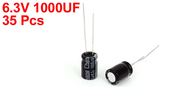 Product Name Electrolytic Capacitor Type Radial Lead Maximum Temperature -40+105°C Withstand Voltage 6.3V Capacitance 1000UF Body Size 8 x 12mm / 0.3" x 0.58" (D*L) Lead Length 22mm/ 0.9",26mm/ 1" Total Length 38mm/ 1.5" Dielectric Material Aluminum Weight 35g Color Black, Gray Package Content 35 Pcs x Electrolytic Capacitors - Reviews