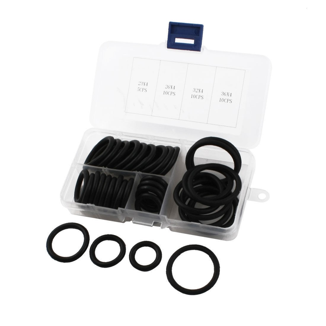 10Pcs: 36 x 28 x 4mmHolder Box Size 13 x 6.7 x 2.4cm/5.1" x 0.27 x 0.94"(L*W*H) Material Rubber Color Black Weight 82g Package Content 35Pcs x Oil Seal Ring Set