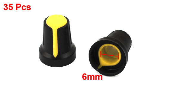 35 x Yellow Plastic Potentiometer Rotary Control Knobs Caps 6mm Dia Shaft Hole