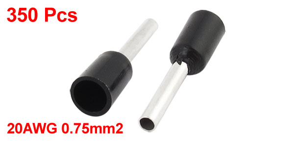 350 Pcs Wire Crimp Cord End Terminal Insulated Ferrule Black E7508 20AWG 0.75mm2