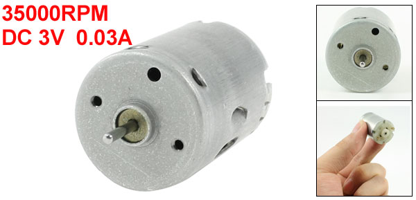 Product Name DC Motor Rated Voltage DC 3V Rated Current 0.03A Speed 35000RPM Mounting Screw Hole Diameter 1mm/0.04" Mounting Screw HoleCenter Distance 14mm/0.55" Shaft Size 2 x 7mm/ 0.08" x 0.3"(D*L) Body Size 29 x 21mm/ 1.1" x 0.8" (H*D) Main Color Silver Tone External Material Metal, Plastic Net Weight 31g Package 1 x DC Motor - Reviews