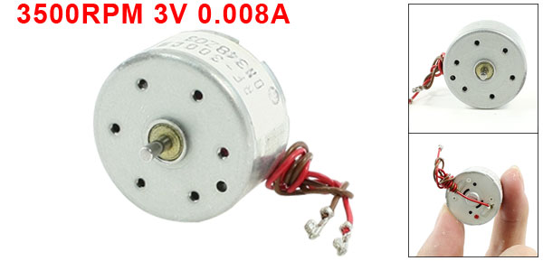 Product Name DC Motor Rated Voltage DC 3V Speed 3500RPM Rated Current 0.008A Mounting Screw Hole Diameter 1mm/0.04" Shaft Size 2 x 5mm/ 0.08" x 0.2"(D*L) Body Size 24 x 12mm/ 0.9" x 0.5" (D*H) Cable Length 13cm/5.1" Main Color Silver Tone Material Metal Net Weight 21g Package 1 x DC Motor - Reviews