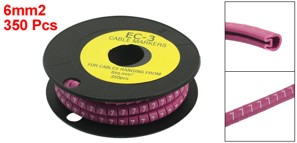 Product Name Cable Marker Model EC-3 Material PVC Design Concave Shape Marker Letter. 7 Suitable Wire 6mm2 Inner Diameter(Approx.) 5mm/0.2" Each Marker Size 8 x 6mm/0.31" x 0.24"(L*D) Color Purple Total Weignt 114g Net Weignt 101g Package Content 350Pcs(±2%) x Cable Marker - Reviews