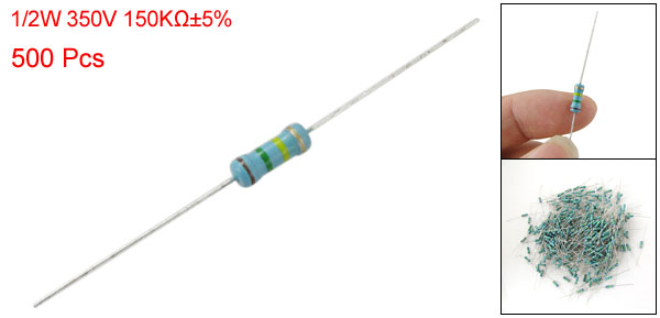 Product Name Carbon Film Resistors Quantity 500 ±2%Pcs Rating Power 1/2W Resistance 150KΩ Resistance Tolerance ± 5% Working Voltage 350V Mounting Type DIP(Through Hole) Size(Not Include Leads) 2.6 x 8.5mm/ 0.1" x 0.334"(D*L)