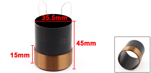 Wire: Copperd (Inner Dia) 35.5mm / 1.39" D (Outter Dia) 38mm / 1.49" H ( Total Height) 45mm / 1.77" h (Coil Height) 15mm / 0.59" Impedance 5 Ohm Coil Power 100W~300W Coil Layer 4 Fit for Bass Speaker Weight 15g Color Black Package Content 1 x Voice Coil - Reviews