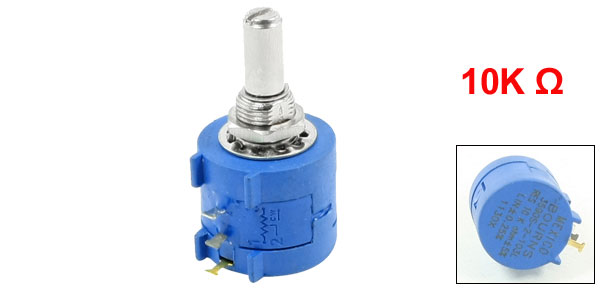Product Name Potentiometer Model 3590S-2-103L Type Rotary Shaft Technology Wirewound Turns 10 Resistance Value 10K Ohm Resistance Tolarance +/-5% Linearity +/-0.25% Shaft Diameter 6mm/0.24" Threaded Diameter 9mm/ 0.35" Body Size(No Include Shaft) 22 x 19mm/ 0.9" x 0.7" (D*H) Total Length 40mm/1.6" Color Blue, Silver Tone Net Weight 18g Package 1 x Potentiometer - Reviews