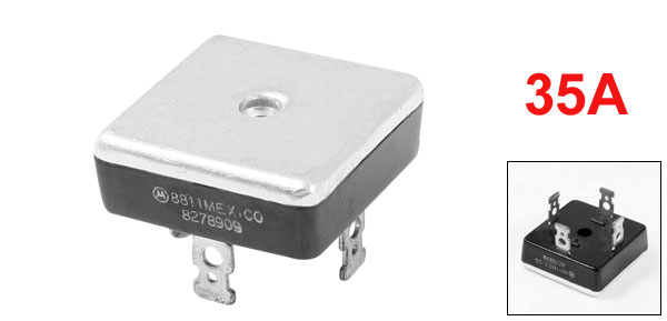 Terminal Size 11 x 6mm/ 0.4" x 0.24"(L*W) Body Size 35 x 35 x 13mm/ 1.4" x 1.4" x 0.5" (L*W*T) Mounted Hole Dia. 5.5mm/ 0.2" Material Resin, Aluminum Color Silver Tone Net Weight 32g Package Content 1 x Single Phase Bridge Rectifier - Reviews