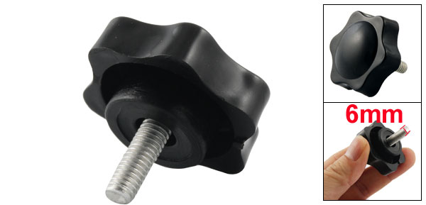 Product Name Star Knob Type Screw On Head Diameter 35mm/ 1.38" Thread Length 15mm/ 0.59" Thread Diameter 6mm/ 0.24" Total Height 30mm/ 1.18" Material Metal, Plastic Color Silver Tone, Black Weight 13g Package Content 1 x Star Knob - Reviews