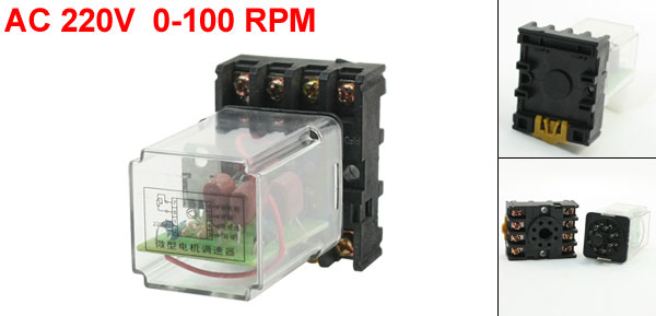 Product Name Motor Speed Controller Power Supply AC 220V Frequency 50HZ Speed Adjustable Range 0-100 RPM Terminal Number 8 Mounting Type 35mm DIN Rail Total Size 7.3 x 5.1 x 4cm/2.9" x 2" x 1.6"(L*W*H) Color Black, Clear Material Plastic, Electronic Part Weight 61g Package Content 1 x Motor Speed Controller