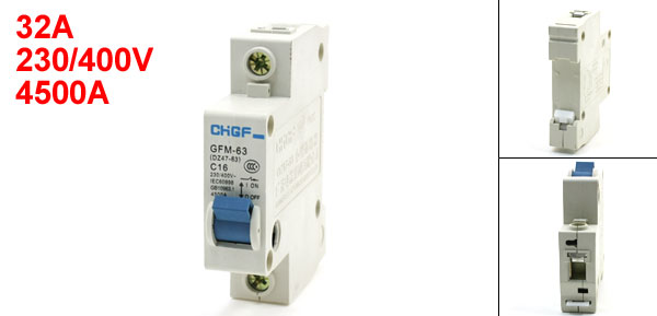 Product Name Circuit Breaker Model DZ47-63 C16 Rated Current 32A Rated Voltage 230/400V Rated Circuit Breaking Capacity 4500A Number of Poles 1 Mount Type 35mm DIN Rail Total Size (Approx.) 77 x 18 x 75mm/ 3.1" x 0.7" x 3" (L*W*H) Material Plastic, Electric Components Weight 76g Package Content 1 x Circuit Breaker - Reviews