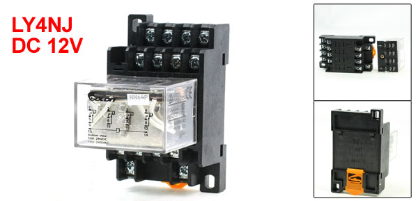 Product Name Electromagnetic Relay Model No. LY4NJ Coil Voltage DC 12V Contact Capacity 10A 240VAC/28VDC Type 4PDT Number of Terminals 14 Mount Rail Type 35mm DIN Rail Fixing Mount Hole Size 6 x 4mm/0.24" x 0.16"(L*W) Total Size (Approx.) 75 x 45 x 65mm/2.7" x 1.3" x 2.6"(L*W*H) Shell Material Plastic Main Color Black, Clear Blue Net Weight 135g Package Content 1 x Electromagnetic Relay - Reviews
