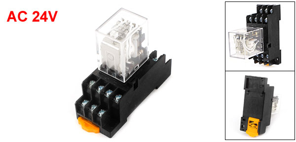 Main Color Clear,Black Brand DMiotech Country of Manufacture CHINA Model HH54P Contact 3PDT(3NO 3NC) Material Plastic,Metal Fixing Hole Dia 5 x 4mm/0.2" X 0.16"(L*W) Hole Centre Diastance 6cm/2.4" Net Weight 78g Mount Rail Type 35mm DIN Rail Number of Pins 14 Package Content 1 x Electromagnetic Relay Contact Capacity AC-12 250V 5A DC-12 28V 5A Total Size (Approx.) 7.5 x 6.5 x 3cm/ 3" x 2.6" x 0.2" (L*W*H) Coil Voltage AC 24V Socket Size 7.5 x 3 x 3cm/3" x 1.2" x 1.2"(L*W*T) - Reviews