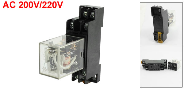 35mm Din Rail Mount Socket AC 200V/220V Coil DPDT Electromagnetic Power Relay