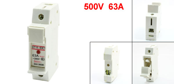 Product Name Fuse Holder Type RT18-63A Fit Fuse 14 x 51mm / 0.55" x 2.0" (D*H) Rating 500V 63A Pole Quantity 1 Fit Mount Rail 35mm DIN Rail (Not Include Here) Overall Size(Approx) 10 x 2.3 x 7.6cm / 3.9" x 0.9" x 3"(L*W*H) Material Hard Plastic & Metal Weight 157 Package Content 1 x Fuse Holder - Reviews