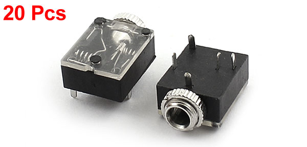 Pins 5-Pin Main Color Black Net Weight 37g Country of Manufacture CHINA Package Content 20Pcs x 3.5mm Audio Jack Socket Type 3.5mm Female Jack Material Metal Total Size 18 x 11.5 x 6mm/0.71" x 0.45" x 0.24"(L*W*T) - Reviews