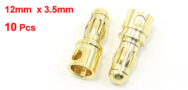 Product Name Banana Bullet Connector Male Material Metal Color Gold Tone Each Length 12 mm / 0.47" Inside Diameter 3.5 mm / 0.14" Weight 10g Package Content 10 x Banana Bullet Connector Male - Reviews