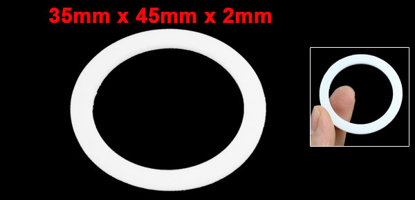 Product Name Flat PTFE Gasket Type Flat Material Polytetrafluoethylene(PTFE) Inside Diameter 35mm / 1 3/8"(1.378") Outside Diameter 45mm / 1 7/9"(1.77") Thickness 2mm / 5/64"(0.787") Color White Net Weight 4g Package Content 1 x Flat PTFE Gasket - Reviews
