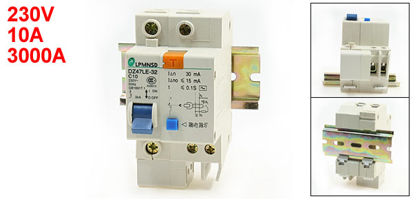 Product Name Circuit Breaker Model DZ47LE-32 C10 Rated Voltage 230V Rated Current 10A Rated Circuit Breaking Capacity 3000A Frequency 50Hz Mounting Type 35mm DIN Rail Mount Body Size (Approx.) 9 x 7 x 4.5cm/3.5" x 2.8" x 1.8"(L * W * H) Lead Rail Size 7.8 x 3.5 x 0.6cm/3.1" x 1.4" x 0.24"(L*W*H) Number of Poles 1 Material Plastic, Electric Components Color Gray, Blue Weight 185g Package Content 1 x Circuit Breaker