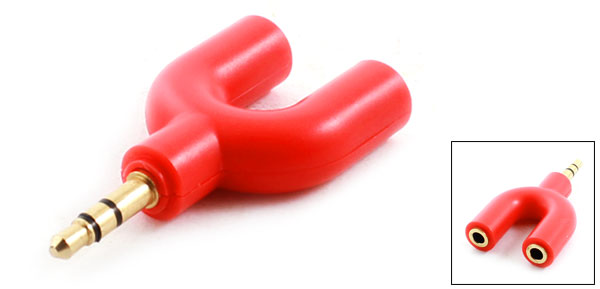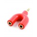 3.5mm Male to 2 3.5mm Female Spliter Audio Plug Earphone Adapter Red