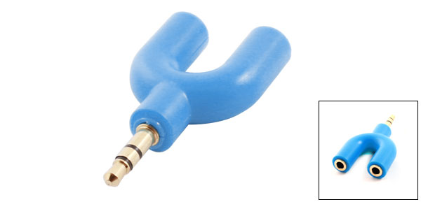 3.5mm Male to 2 Female Socket Headphone Audio Plug Connector Adapter Blue