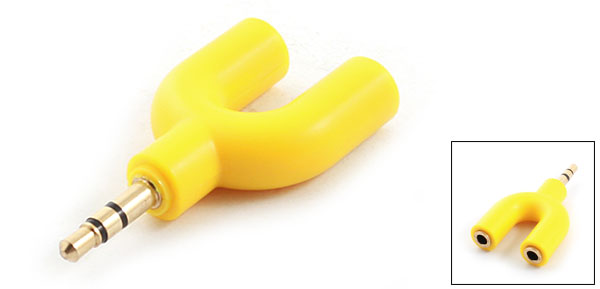 3.5mm Male to 2 Female Socket Headphone Audio Plug Connector Adapter Yellow