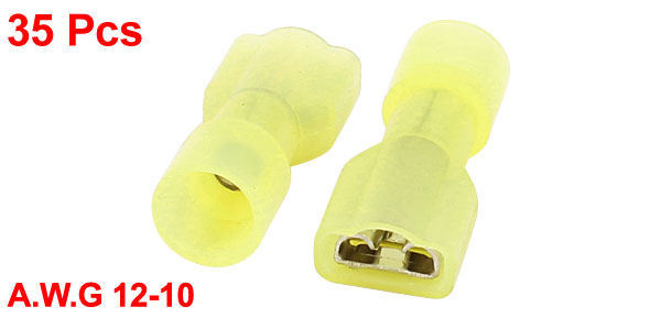 35Pcs 6.6mm 12-10 AWG Wire Cord Insulated Crimp Terminal Connector Yellow