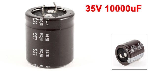 Product Name Electrolytic Capacitor Type Radial Lead Features Standard General Purpose Maximum Temperature 105°C Withstand Voltage 35V Capacitance 10000uF Body Size 30 x 32mm / 1.2" x 1.3'' (D*L) Terminal Spacing 9mm / 0.35'' Dielectric Material Aluminum Color Brown Weight 28g Package Content 1 x Electrolytic Capacitors - Reviews