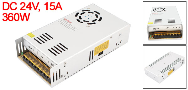 DC Output DC 24V, 15A Power 360W Terminal Quantity 9 Total Size 214 x 113 x 50mm/ 7.9" x 3.9" x 1.7" (L*W*T) Case Material Metal Main Color Silver Tone Weight 813g Package Content 1 x Switching Power Supply - Reviews