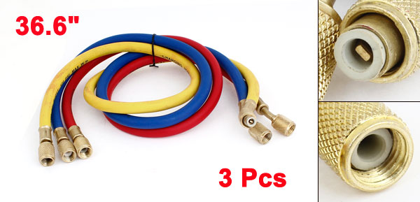 36.6" Length Air Conditioning Refrigeration Charging Hoses Pipe Tri Color 3 Pcs