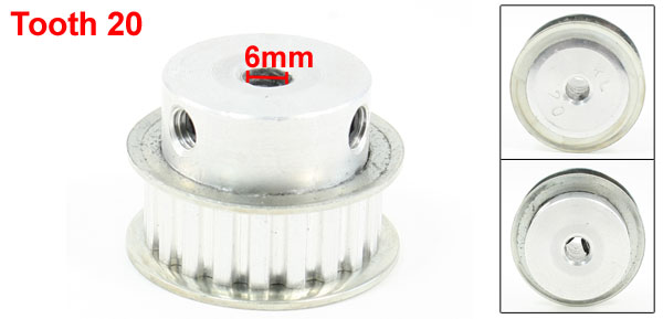 Product Name Timing Pulley Type XL20 Number of Tooth 20 Pitch 1.6mm/1/16'' Top Diameter 27mm/1.06" Overall Size 36 x 25mm/1.4'' x1''(D*H) Bore Diameter 6mm/ 15/64" Fit Belt Width 11mm/0.43'' Material Aluminum Color Silver Tone Weight 52g Package Content 1 x Timing Pulley - Reviews