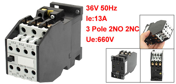 36V 50Hz Coil 13Amp Three Poles 2NO 2NC 35mm Mounting Rail 11KW AC Contactor