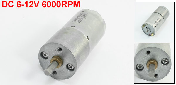 Product Name DC Geared Motor Model ZGA25R-370 Rated Voltage DC 6-12V Rated Speed 6000RPM Shaft Size 10.5 x 4mm/ 0.4" x 0.16" (L*D) Motor Body Size 54 x 25mm/ 2.1" x 1"(L*D) Total Length(Included Pin) 70mm/ 2.8" Pin Number 2 Pins Material Metal, Electronic Parts Color Silver Tone Weight 91g Package Content 1 x DC Geared Motor - Reviews