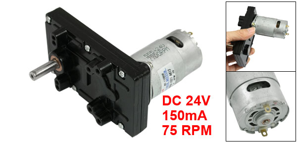 Product Name Gear Motor Rated Voltage DC 24V Rated Current 150mA Rated Torque 4.13Kg.cm Rated Speed 75 RPM Shaft Size 22 x 8mm/0.9" x 0.3" (L*D)