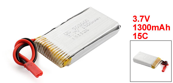 Net Weight 38g Rate Discharge 15C Country of Manufacture CHINA Package Content 1 x Lipo Battery Voltage 3.7V Material Li-Poly Total Size 52 x 30 x 11mm/2" x 1.2" x 0.43"(L*W*T) Wire Length 90mm/3.5" Capacity 1300mAh Connector Type 2Pin JST SYP Plug Connector - Reviews