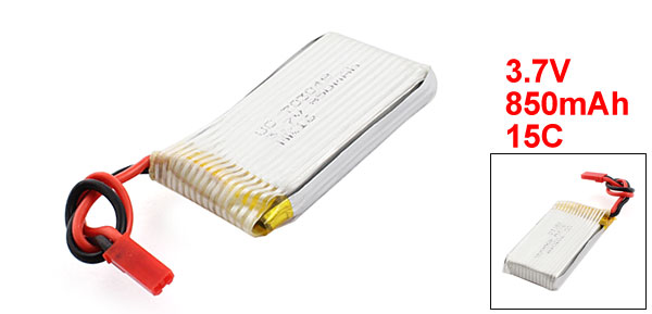 Net Weight 27g Country of Manufacture CHINA Package Content 1 x Lipo Battery Voltage 3.7V Material Li-Poly Total Size 52 x 29 x 9mm/2.1"x 1.2" x 0.35"(L*W*T) Wire Length 90mm/3.5" Capacity 850mAh Connector Type 2Pin JST SYP Plug Connector - Reviews