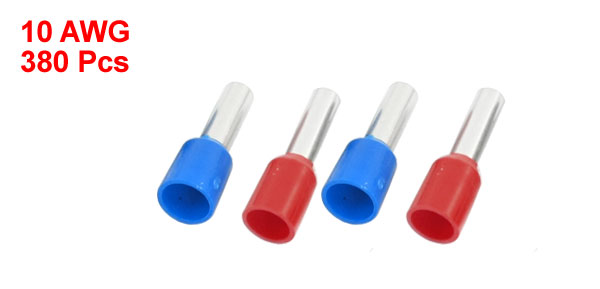 380 Pcs E6012 Blue Red Plastic Cover Pre Insulation Ferrules for 10 AWG Wire