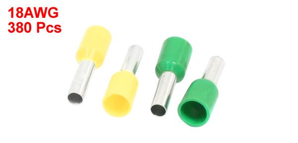 380Pcs E1008 Yellow Green Plastic Sleeve Pre-Insulate Ferrules for 18AWG Wire