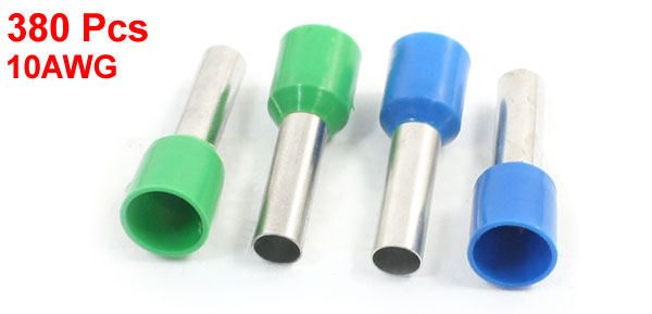 380Pcs Plastic Pipe Pre Insulate Ferrules Terminals E6012 Blue Green 10AWG Wire