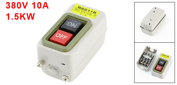 Product Name Power Push Button Switch Type Self Locking ON/OFF, 3P Voltage & Current 380V 10A 1.5KW Total Size (Approx.) 8.1 x 4.3 x 4.7cm / 3.2" x 1.7" x 1.9" (L*W*H) Color Gray External Material Metal, Plastic Net Weight 113g Package Content 1 x Power Push Button Switch - Reviews