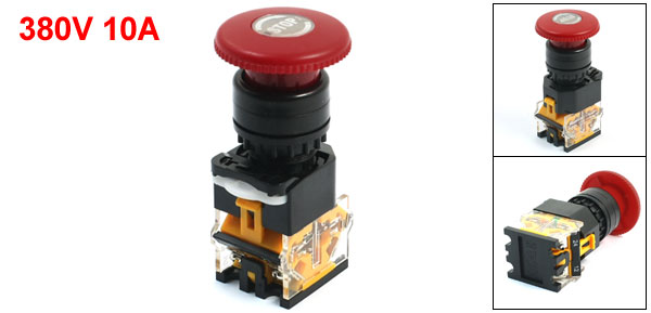 380V 10A DPST 1NO 1NC Circuit Control Self-Locking Mushroom Pushbutton Switch