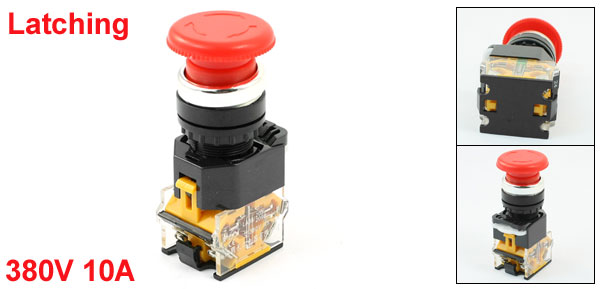 380V 10A DPST Latching Red Mushroom Head Emergency Stop Push Button Switch