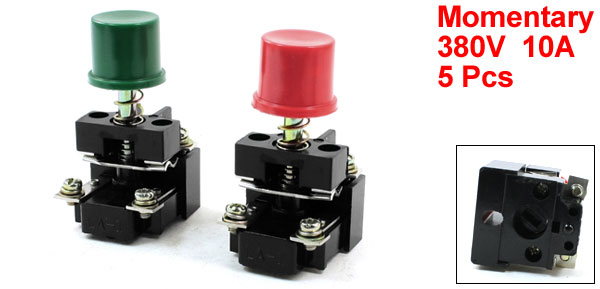 Product Name Push Button Switch Model LA-1 Type Anti-explosion Contact Type 1NO 1NC(DPST) Action Type Momentary Working Voltage & Current 380V 10A Terminal Quantity 4 Button Color Green, Red Button Diameter 2.5cm / 1" Total Size(Approx) 8 x 4.5 x 4.2cm/3.15" x 1.8" x 1.65"(L*W*H) External Material Plastic, Metal, Electric Parts Main Color Green, Red, Black Net Weight 425g Package Content 5 x Push Button Switch  - Reviews
