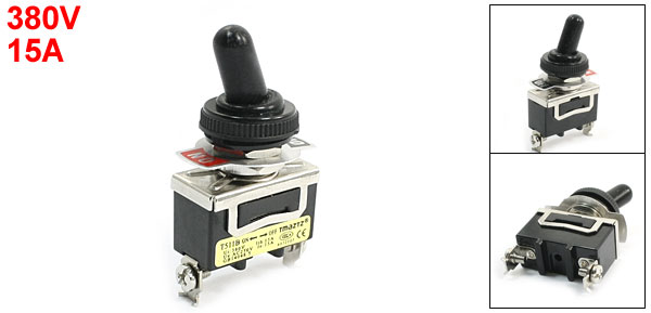Product Name Toggle Switch w Cover Type SPST (ON/OFF) Position 2 Terminal Number 2 Ui & Ith 380V 15A Ue & Le AC250V 15A