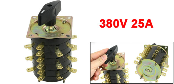 Product Name Combination Changeover Switch Model No. KDH4-8 Frequency 50 Hz Rated Voltage 380V Rated Current 25A Terminal Screw Diameter 3.8mm / 0.15" Square Plate Size 76 x 76mm / 3" x 3" (L * W) Fixing Hole Distance(center to center) 63mm / 2.4" Pin Size 13.3 x 9.4 x 2.4mm / 0.52" x 0.37" x 0.09" (L * W * T) Total Height(not include screw) 130mm / 5.1" Net Weight 576g Material Plastic, Metal Main Color Black, Brass Tone Package Content 1 x Combination Changeover Switch - Reviews