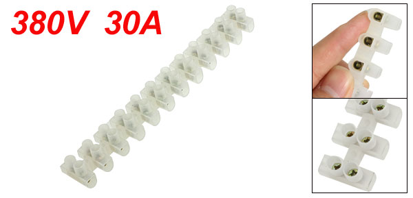 Product Name Terminal Block Material Plastic, Metal Color White Type 12 Postions, 2 Rows Rated Value 380V, 30A Cable Entry Diameter 0.5cm / 0.2'' Overall Size 15.9 x 2.1 x 1.5cm / 6.2" x 0.8" x 0.6" (L*W*H) Net Weight 33g Package Content 1 x Terminal Block - Reviews