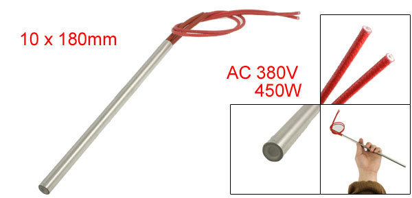 Product Name Cartridge Heater Material Stainless Steel, PVC, Nylon Rated Voltage AC 380V Power 450W Heater Size (Approx.) 10 x 180mm/ 0.39'' x 7“ (D * L)