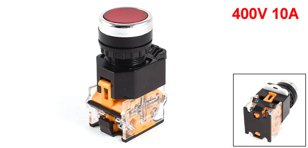 Item Name Push Button Switch Action Type Momentary Contact Type 1 NO+ 1 NC Button Color Red Ith 10A Ui 400V Voltage / Current AC 380V 4A
